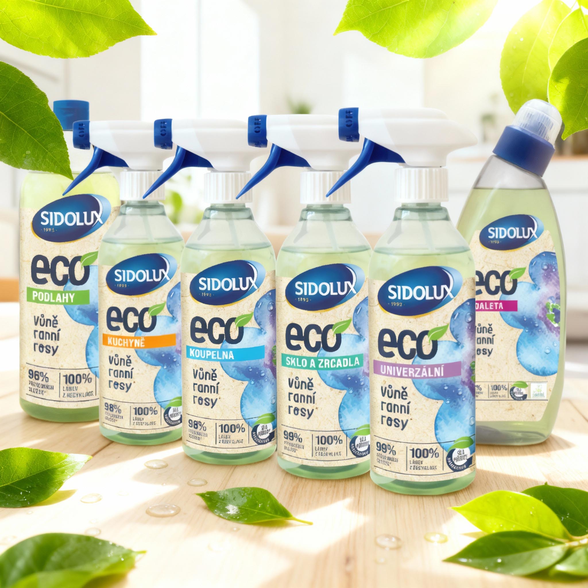 Sidolux Eco spojuje účinný úklid s ohledem na přírodu. Obsahuje až 96 % přírodních složek, má certifikaci Ecolabel a je balený v recyklovaných obalech. Čistota bez kompromisů – šetrně k domovu i planetě.