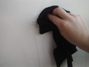 Pěna je hutná, pevná a působí voskově. Tím částečně chrání nábytek před dalším znečištěním a odpuzuje prach svým antistatickým účinkem, ale v tomto případě se i tato složka postarala o rozpuštění barvy z voskové pastelky hned na první pokus. A naopak – částečně zabraňuje dalšímu vnikání špíny do povrchu nábytku. Pokud se děti znovu pokusí pokreslit nábytek, půjde jim to o trochu hůř. Kdyby však náhodou – tak zase o něco lépe půjde další odstraňování.